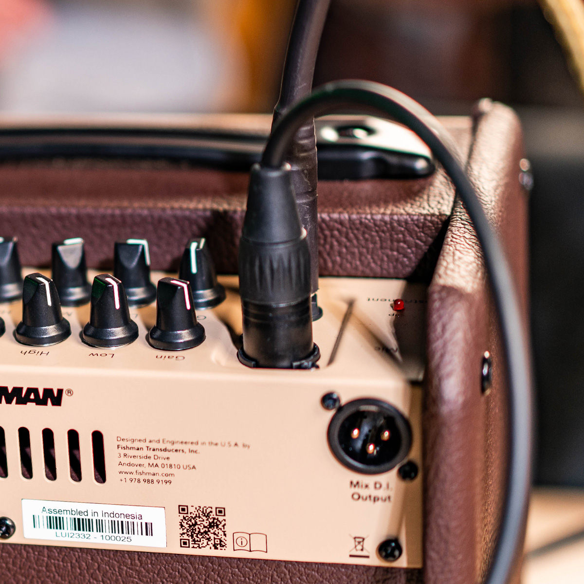 Balanced XLR output sends your mix directly to the house sound system or recording device