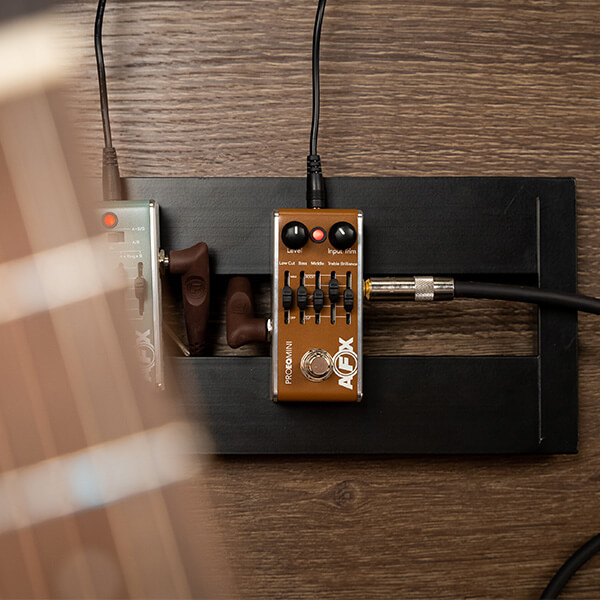 Unlike conventional guitar stompboxes, AFX Pro EQ Mini features an analog preamp that provides up to 20dB of quality gain and impedance matching for most passive, active and magnetic acoustic instruments.