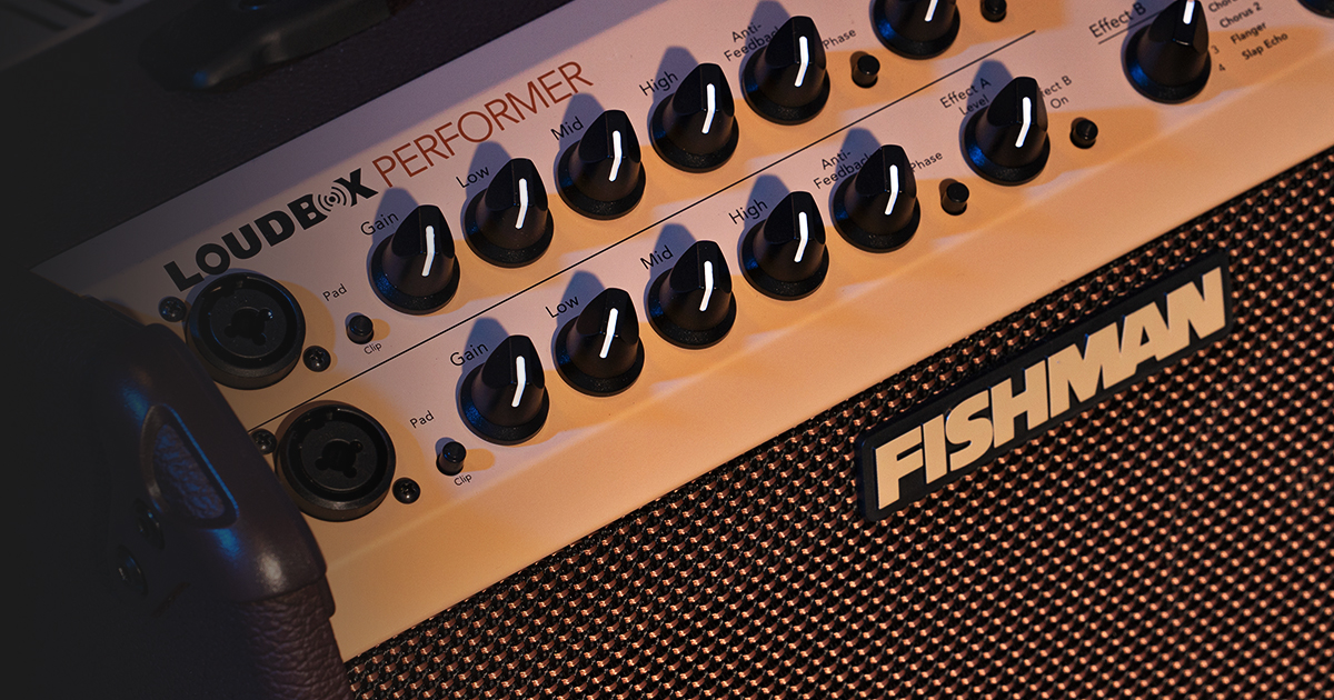 Two well-equipped channels makes Loudbox Performer ideal for singer-songwriters, multi-guitar gigs, duo performances and much more. Each channel offers mic and instrument inputs, Fishman’s acclaimed 3-band EQ, and dual effects. A convenient Channel Mute allows you to silence both channels instantly.