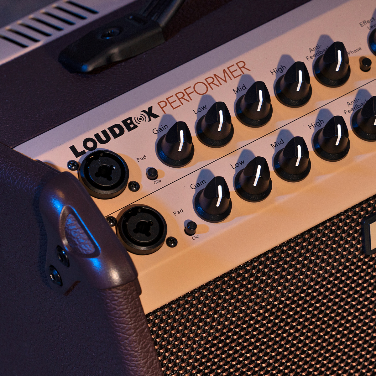 The integrated low-profile kickstand allows you to angle the Loudbox Performer up towards your ears, allowing you to reduce stage volume both from your amp and your floor monitors. Angling your amp upwards also reduces sound reflections off the stage, contributing to a tighter, cleaner performance sound overall.